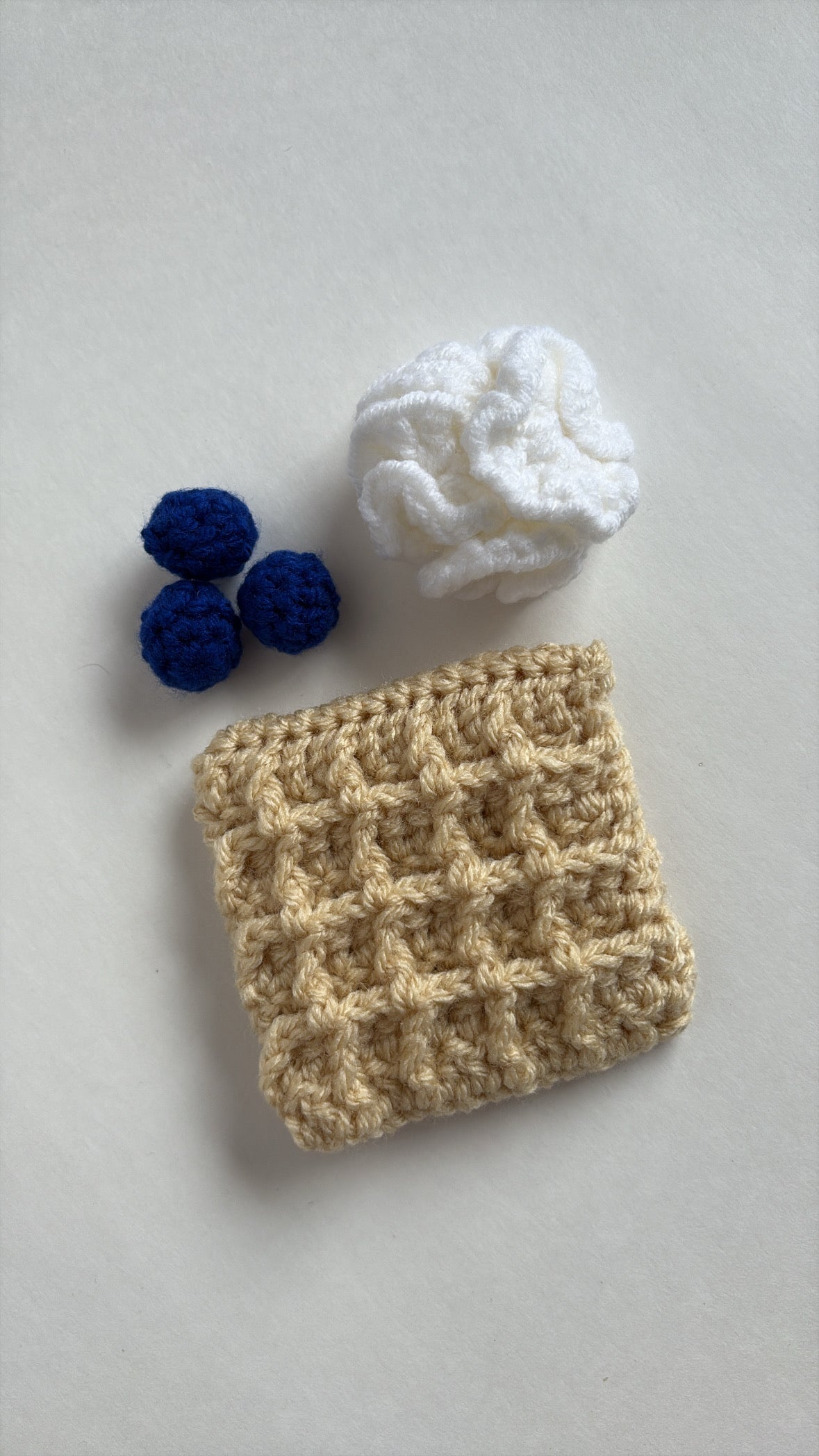 This set includes 1 waffle, whipped cream, and 3 blueberries