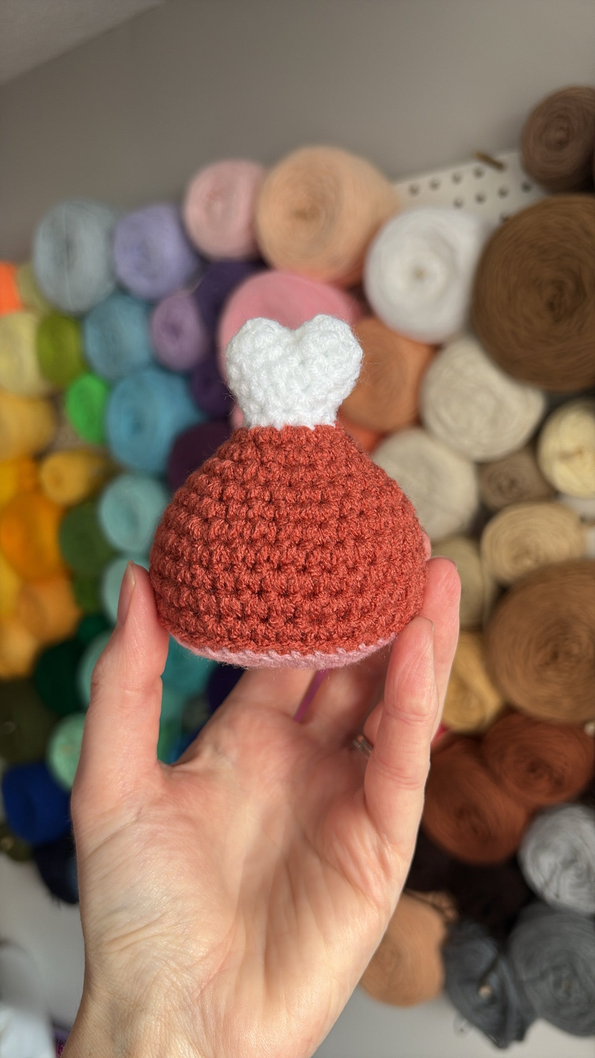 This soft, durable, and colourful crochet play food is the perfect addition to any play kitchen!