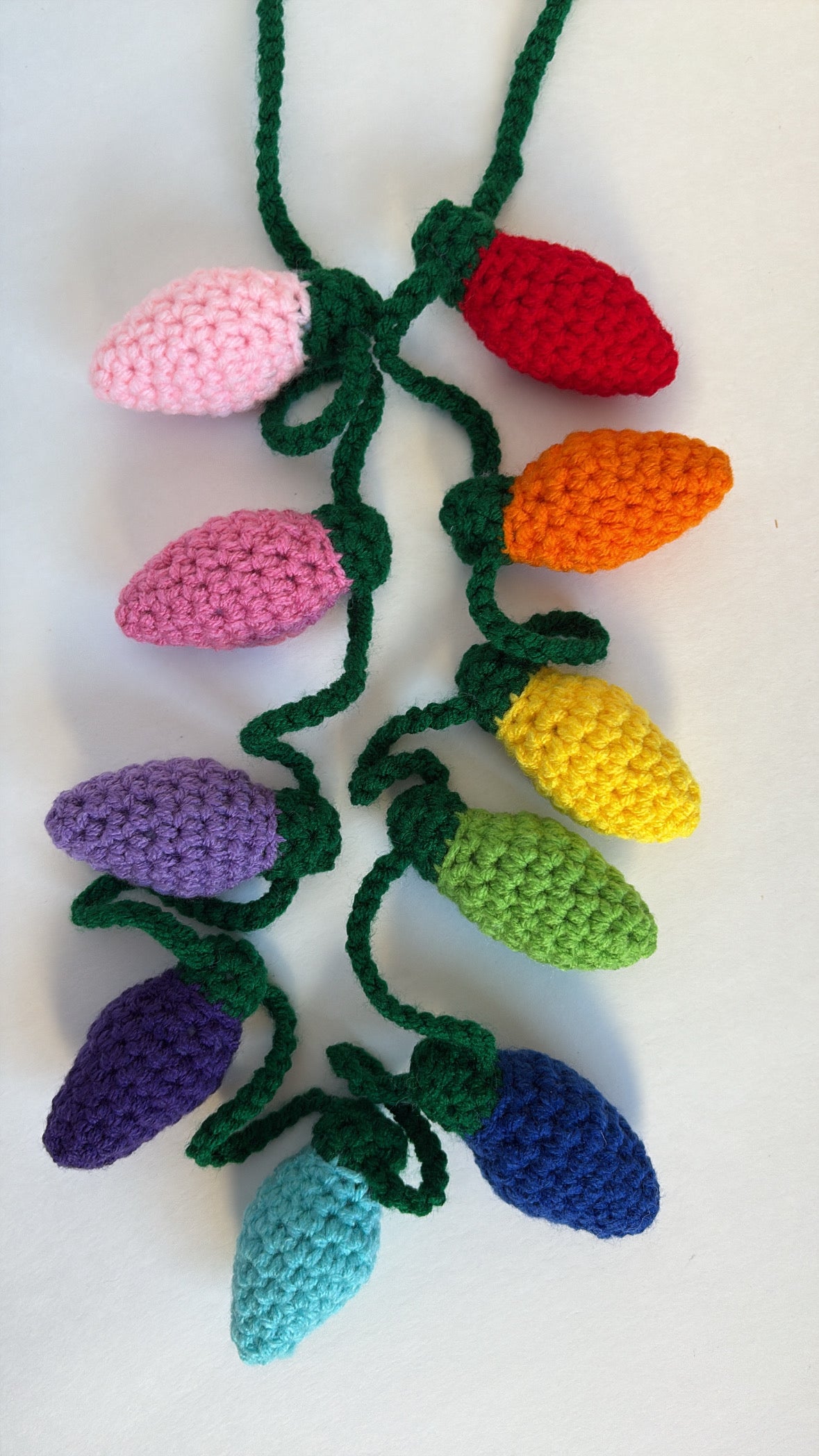 Bulbs are 3”x1.5” and can move along the crochet chain.