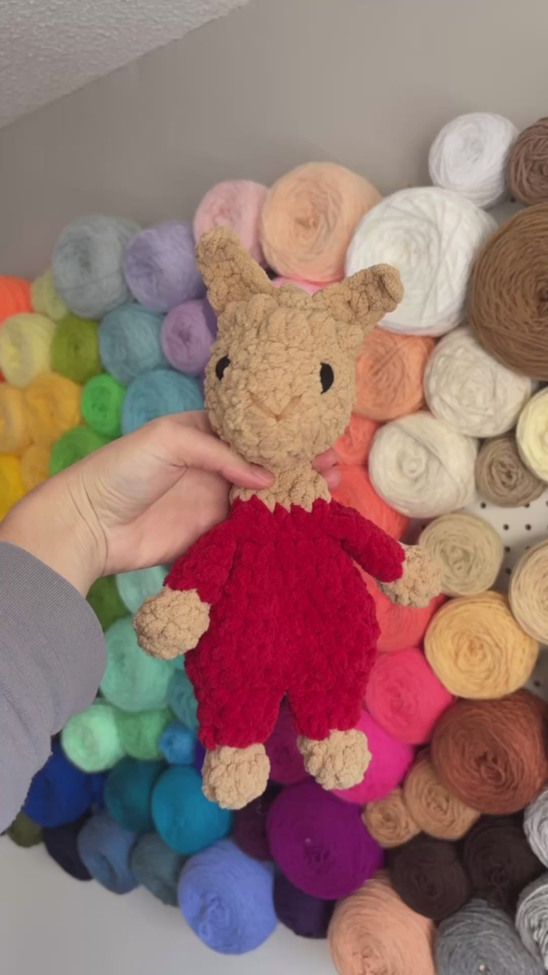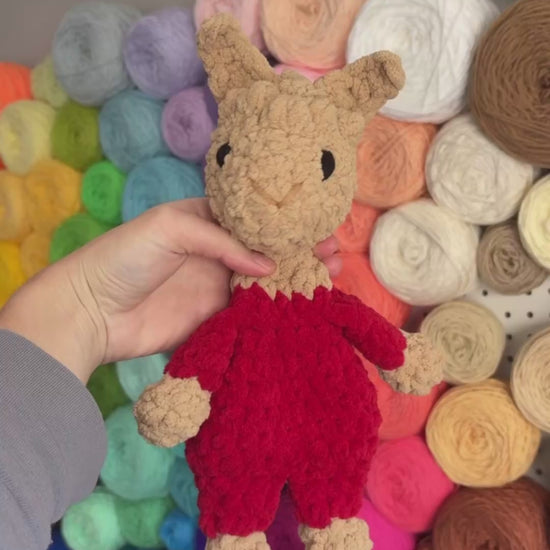 Made with super soft blanket yarn. The body is unstuffed and perfect for cuddling! Great for gifting with a book!