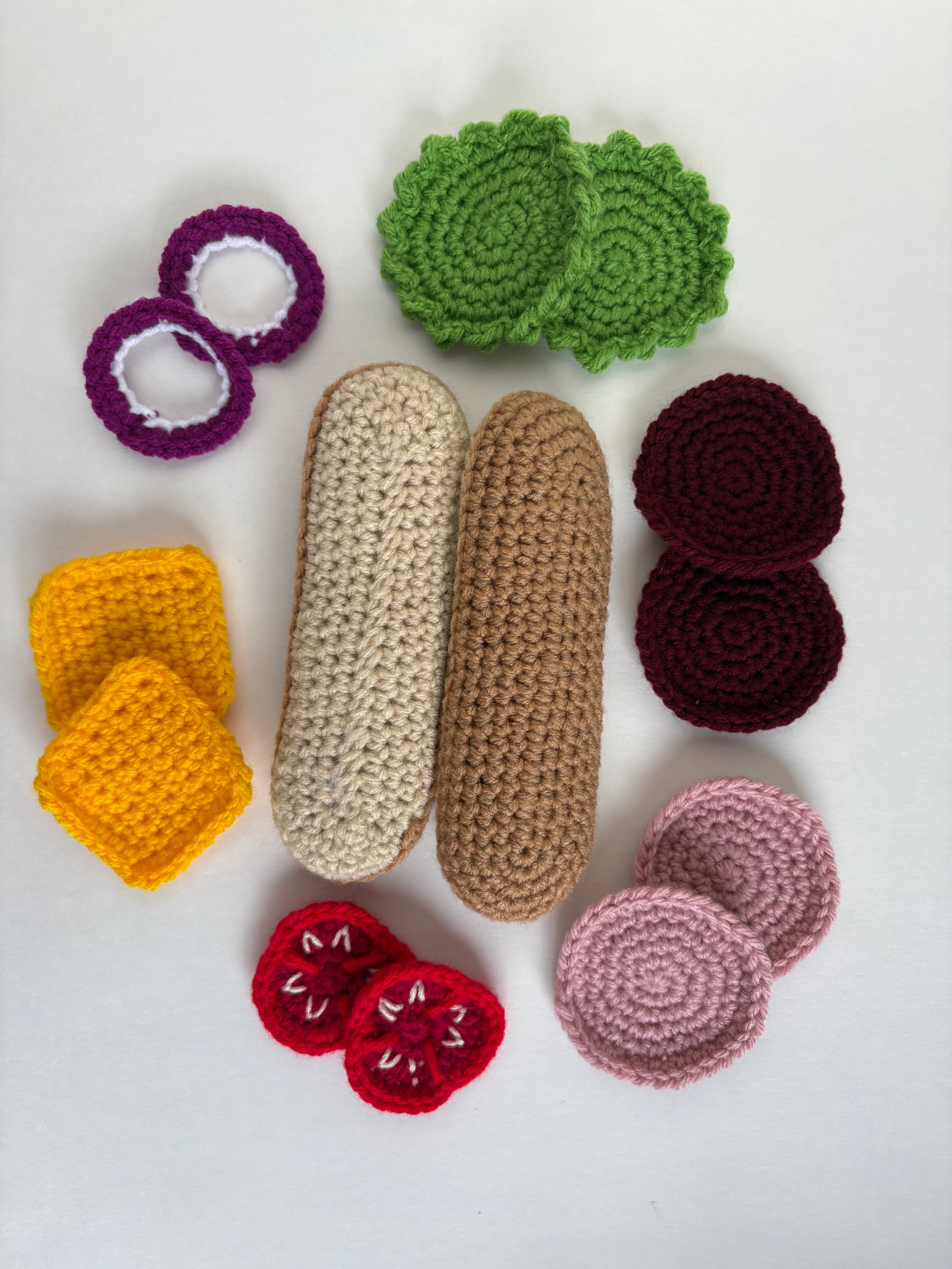 This soft, durable, and colourful crochet play food is the perfect addition to any play kitchen!