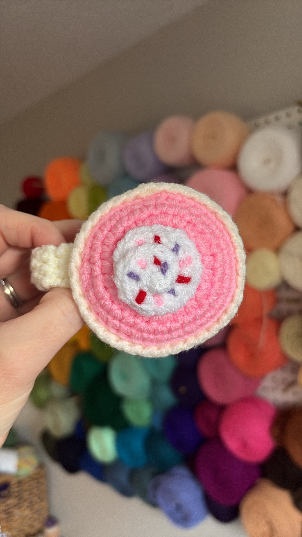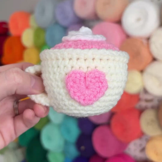 This soft, durable, and colourful crochet play food is the perfect addition to any play kitchen!